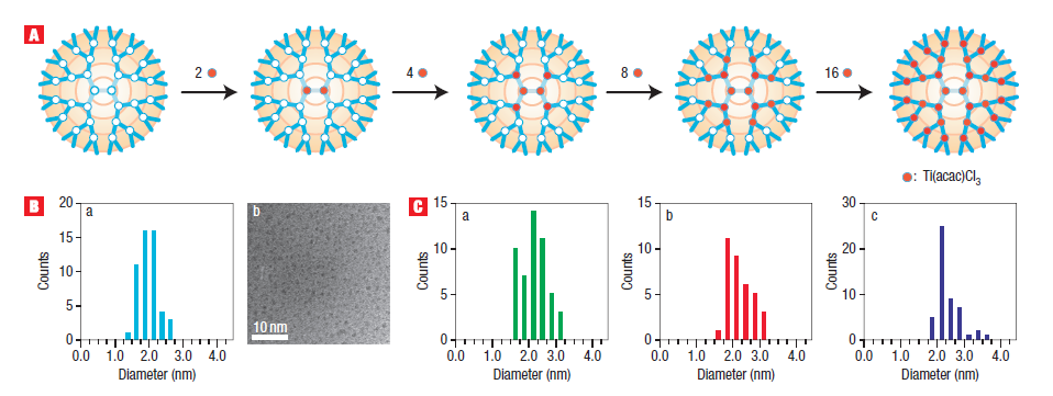 Fig15. Titanium atom introduction control using a dendrimer. Quoted from Norifusa Satoh, et al., Nat. Nanotechnol.,3,106(2008)