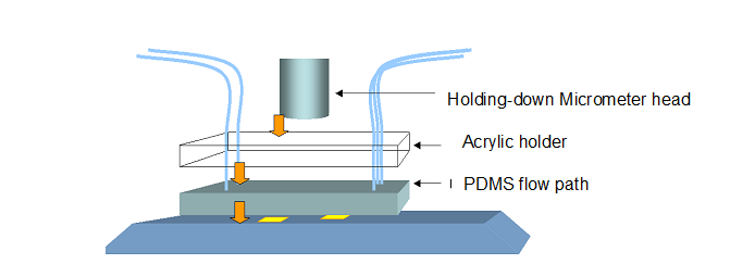 Fig13.The flow path was fixed to a waveguide with Au spots.